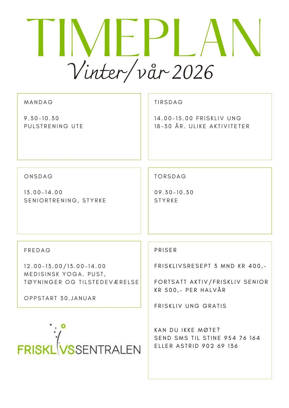 - Friskliv ung (18-30 år) ulike aktiviteter i samarbeid med NAV.