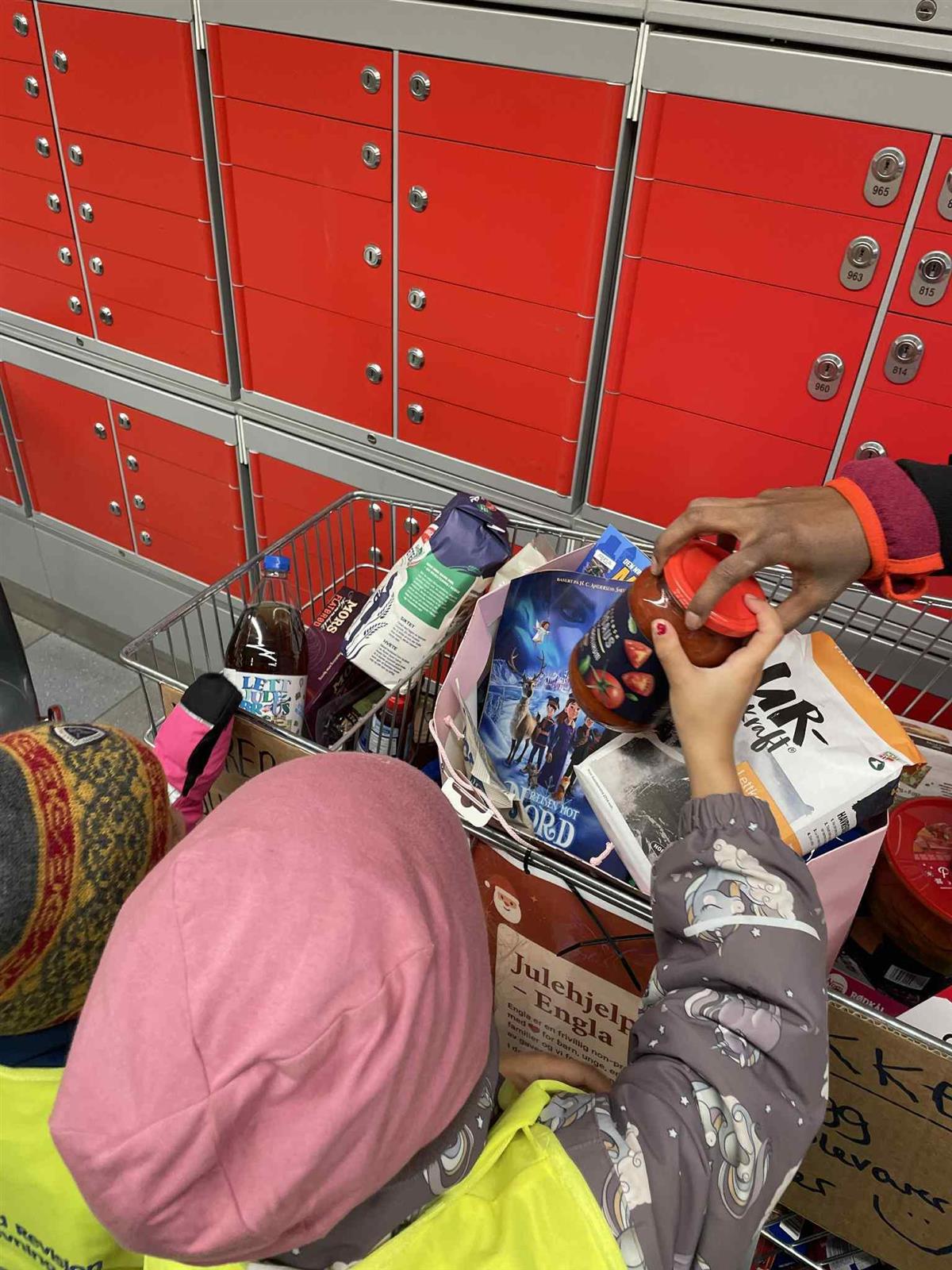 Barna handlet inn matvarer, godsaker, pynt og mer, som de til slutt la i handlevogna til butikkens julehjelp. Alle var enige om at det føltes godt å gi og kunne være med på å glede noen andre 💙✨